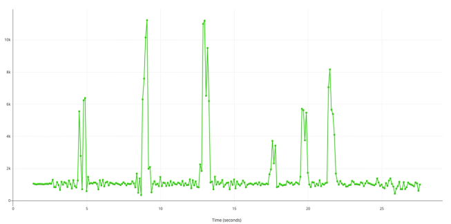 El gràfic mostra el temps al llarg de l'eix X i la força de l'acceleració a l'eix Y. Això es mesura en mil·li G. Com més gran sigui el nombre de l'eix Y, més acceleració s'ha mesurat i més fort serà el teu xut.