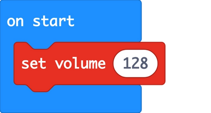 You can set the volume level using the set volume block. It uses numbers from 0 to 255, with 0 being silent, and 255 the loudest. 128 is somewhere in the middle!