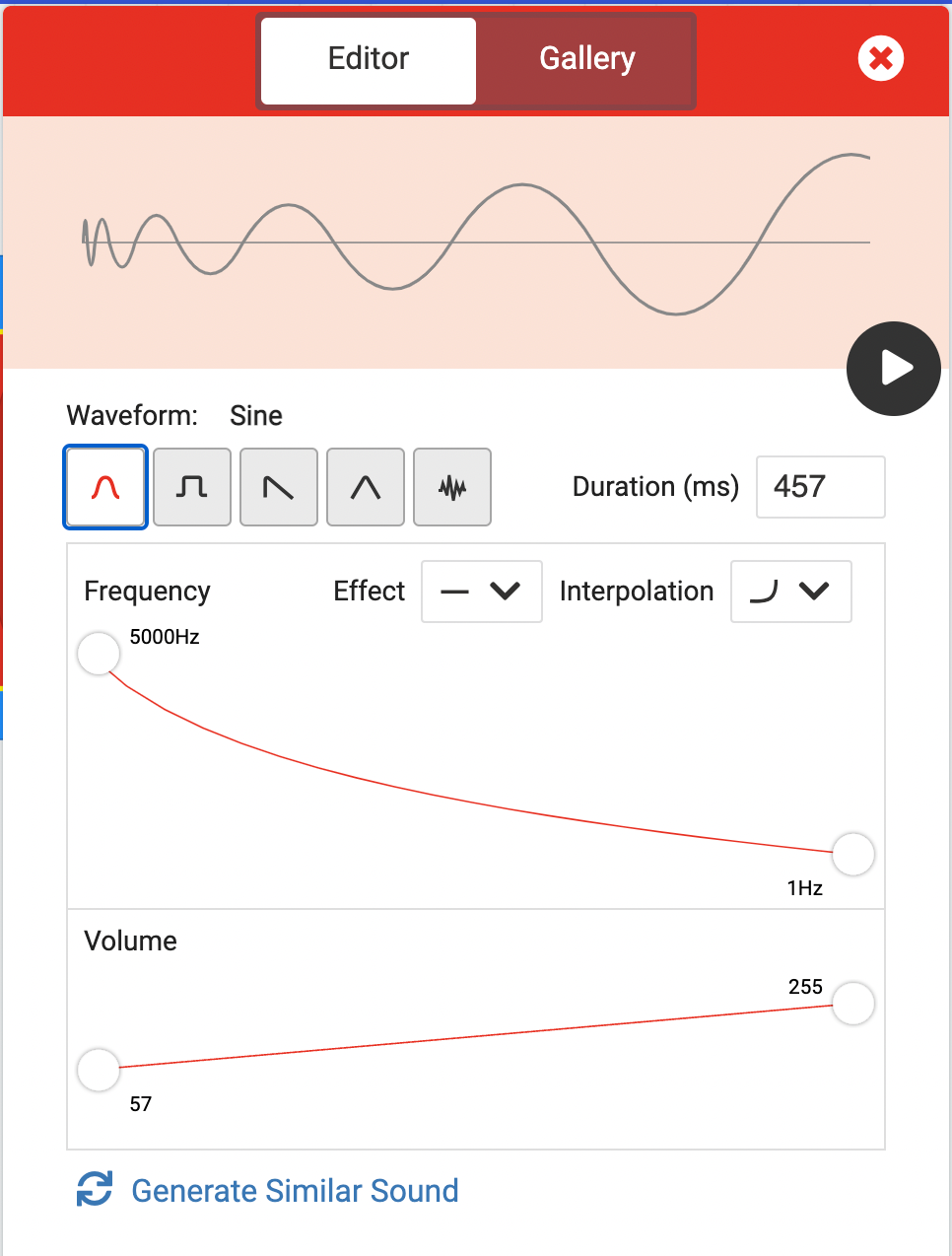 The new sound editor helps you understand key musical and scientific concepts of frequency (pitch) and volume. This visual editor makes the connection between what you see and what you hear as pitch and volume change over time.