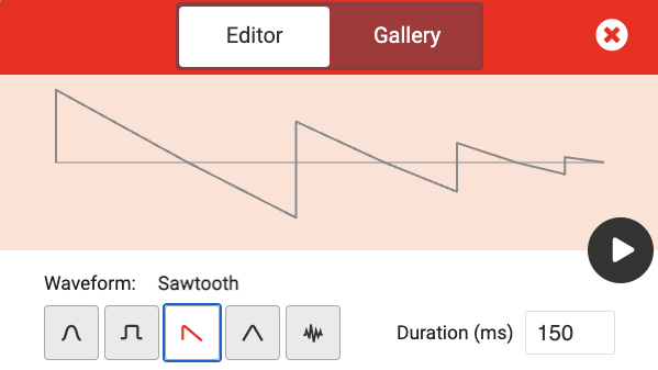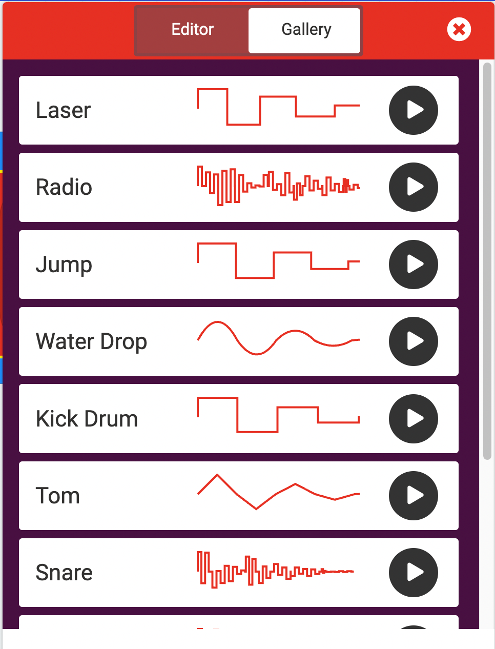The gallery allows you to load new sounds and modify them to make your own sonic creations to augment your projects.