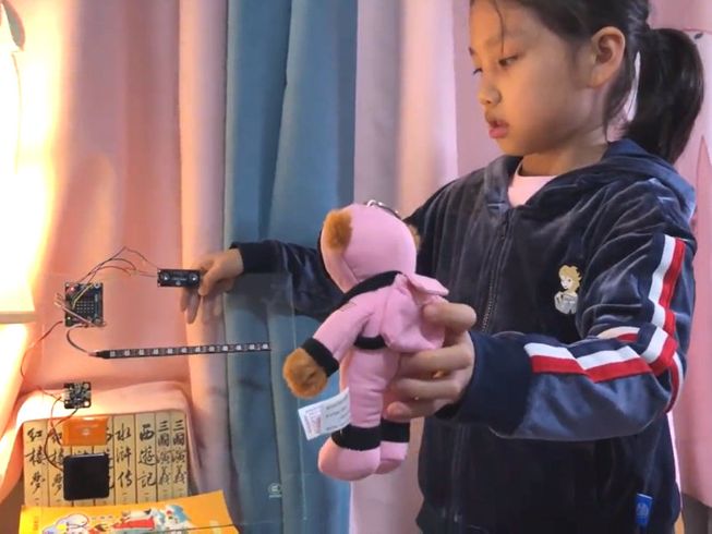 Anqi from China designed a device that prevents birds from colliding with glass windows. She used a micro:mate board and an ultrasonic distance sensor alongside the micro:bit and some LEDs to create a truly unique solution.